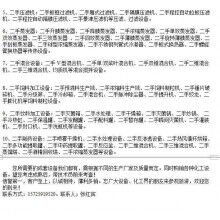 主要包括二手離心機,臥螺離心機,二手碟式離心機,二手臥式螺旋沉降離心機,二手反應釜,二手不銹鋼反應釜,二手搪瓷反應釜,二手搪玻璃反應釜,二手壓濾機,二手板框壓濾機,二手箱式壓濾機,二手過濾機,二手干燥機,二手管束干燥機,二手流化床干燥機,氣流干燥機,管束干燥機,滾筒干燥機,二手閃蒸干燥機,二氣流噴霧干燥機,壓力噴霧干燥機,離心噴霧干燥機,并流噴霧干燥機,冷凍干燥機,真空干燥機,雙錐回轉(zhuǎn)真空干燥機,二手蒸餾塔,二手酒精塔,二手振動篩,流化床振動篩,蒸餾釜,二手貯罐,不銹鋼儲罐,玻璃鋼儲罐,臥式儲罐,防腐儲罐,液氨儲罐,二手蒸發(fā)器,薄膜蒸發(fā)器,雙效蒸發(fā)器,三效蒸發(fā)器,二手高頻振動篩,二手振動篩,二手導熱油爐,二手蒸汽鍋爐,二手米糠油機械,二手胚芽油機械,二手榨骨機設(shè)備,二手蒸脫機,二手蒸炒鍋,二手軟化滾筒、軋胚機、烘干機、剝殼機、振動流化床干燥機、圓篩、振動篩、平篩、膨化機及進口膨化機、板框過濾機、振動排渣葉片過濾機、冬化過濾機、離心機、阿法拉發(fā)碟式分離機、脫皂機、冷凝器、換熱器、水化罐、精煉罐、脫臭罐、脫色罐、立絞籠、平絞籠、提升機等,進出口色拉油設(shè)備、生化油設(shè)備、氫化油設(shè)備、生物柴油設(shè)備、設(shè)備及各種零配件等。