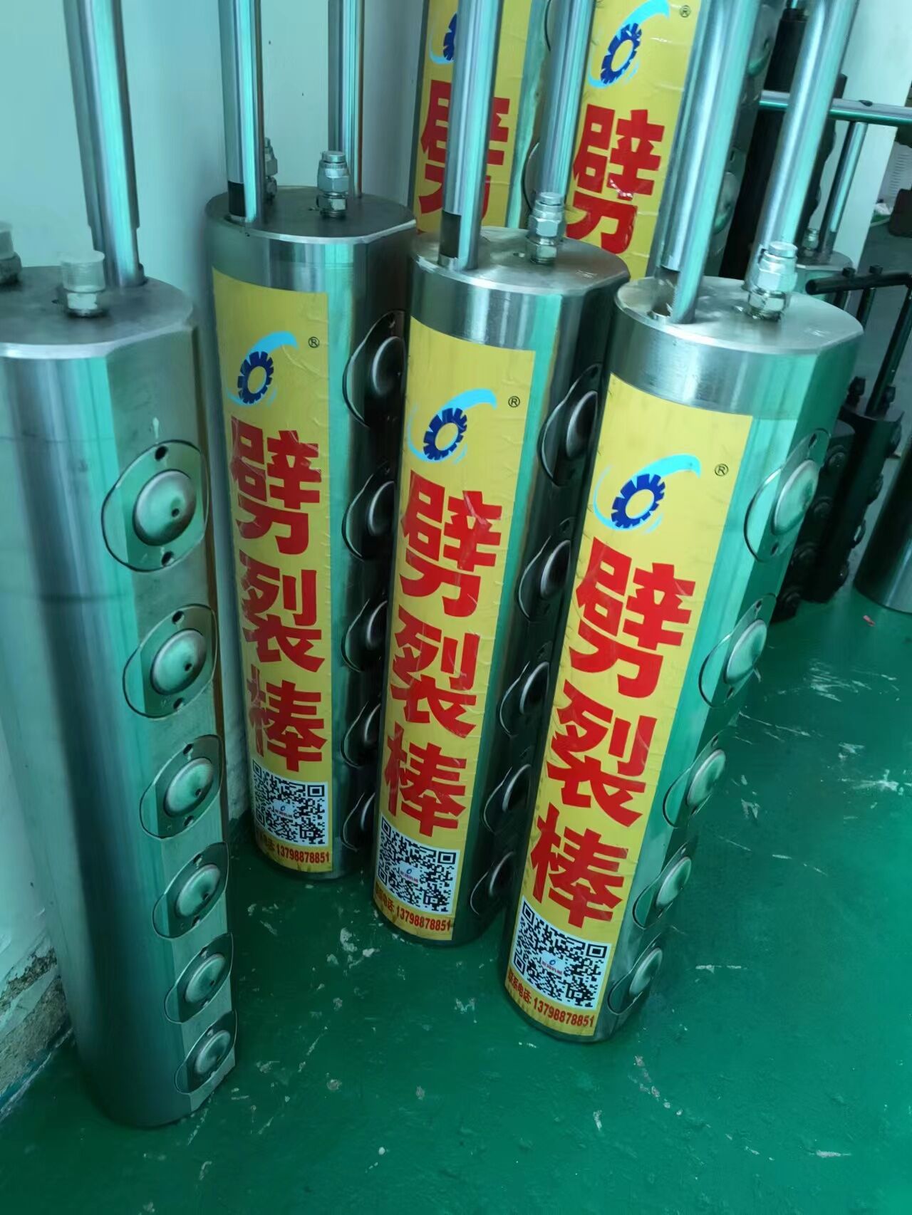 液壓柱塞式棒原理及組成液壓柱塞式棒主要由液壓泵站和劈裂器(棒)兩部分組成。120-150MP超高壓油泵站輸出的高壓油驅(qū)動(dòng)油缸產(chǎn)生巨大推動(dòng)力(1300-1500噸),并推動(dòng)劈裂棒上的活動(dòng)活塞向外運(yùn)動(dòng),從而使活塞產(chǎn)生的作用力作用于被體孔壁,巖石在巨大的作用力下按預(yù)定方向裂開(kāi)。