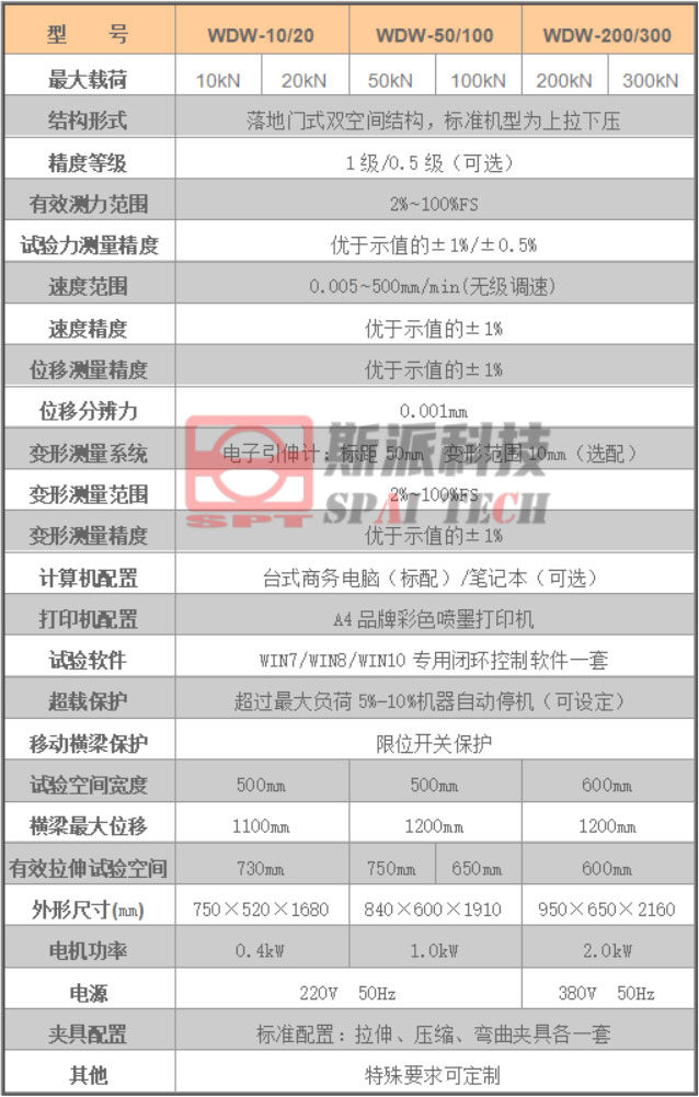 WDW系列大門式微機(jī)控制電子萬能材料試驗(yàn)機(jī)采用穩(wěn)定的門式主機(jī)結(jié)構(gòu),選用日本松下(Panasonic)伺服調(diào)速系統(tǒng)、精密設(shè)計(jì)同步減速系統(tǒng)、臺(tái)灣上銀(HIWIN)/銀泰(PMI)滾珠絲杠、美國傳力(Trancell)/世銓(Celtron)力傳感器等主要部件,主要應(yīng)用于金屬、非金屬材料及制品的拉伸、壓縮、彎曲等力學(xué)性能試驗(yàn),具有結(jié)構(gòu)簡(jiǎn)單、穩(wěn)定可靠、外形美觀等特點(diǎn),深受廣大用戶的歡迎。