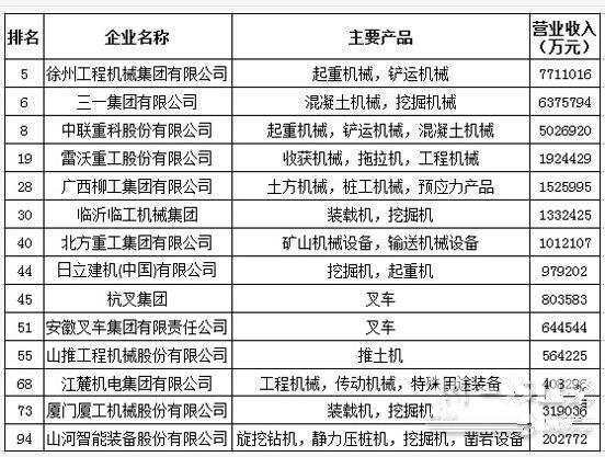 日前,中國(guó)機(jī)械工業(yè)百?gòu)?qiáng)企業(yè)名單出爐,工程機(jī)械行業(yè)有14家企業(yè)入圍,數(shù)量?jī)H次于電工電器行業(yè)排第二,說(shuō)明工程機(jī)械作為機(jī)械行業(yè)的支柱地位不可撼動(dòng)。
