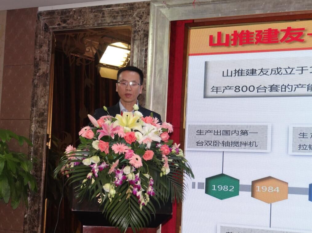 山推建友機械股份有限公司研究院院長陳自云做《中國攪拌第一,專注凝聚,力恒強》的主題發(fā)言。