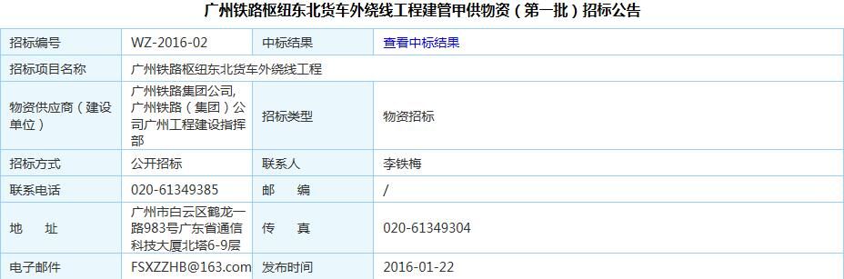 廣州鐵路樞紐東北貨車(chē)外繞線工程建管甲供物資招標(biāo)公告
