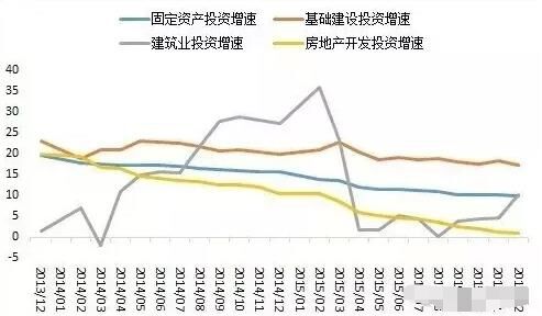 2015年,全國固定資產(chǎn)投資(不含農(nóng)戶)551590億元,比上年名義增長10%(扣除價格因素,實際增長12%),增速比1-11月份回落0.2個百分點。從環(huán)比速度看,12月份固定資產(chǎn)投資(不含農(nóng)戶)增長0.68%。建筑業(yè)固定資產(chǎn)投資總額4895億元,同比增長10.2%,增速較1-11月提高了5.4個百分點。今年以來,制造業(yè)投資大勢已去,房地產(chǎn)投資降至歷史低點且尚未見底。由于基建投資具有逆周期特性且保持快速增長,穩(wěn)增長寄希望于基建投資托底。發(fā)改委更是密集批復(fù)基建項目助力穩(wěn)增長。基礎(chǔ)設(shè)施投資(不含電力)101271億元,比上年增長17.2%,增速比1-11月份回落1個百分點。其中,水利管理業(yè)投資增長21%,增速回落2.3個百分點;公共設(shè)施管理業(yè)投資增長20.2%,增速回落0.3個百分點;道路運輸業(yè)投資增長16.7%,增速回落0.8個百分點;鐵路運輸業(yè)投資增長0.6%,增速回落0.2個百分點。